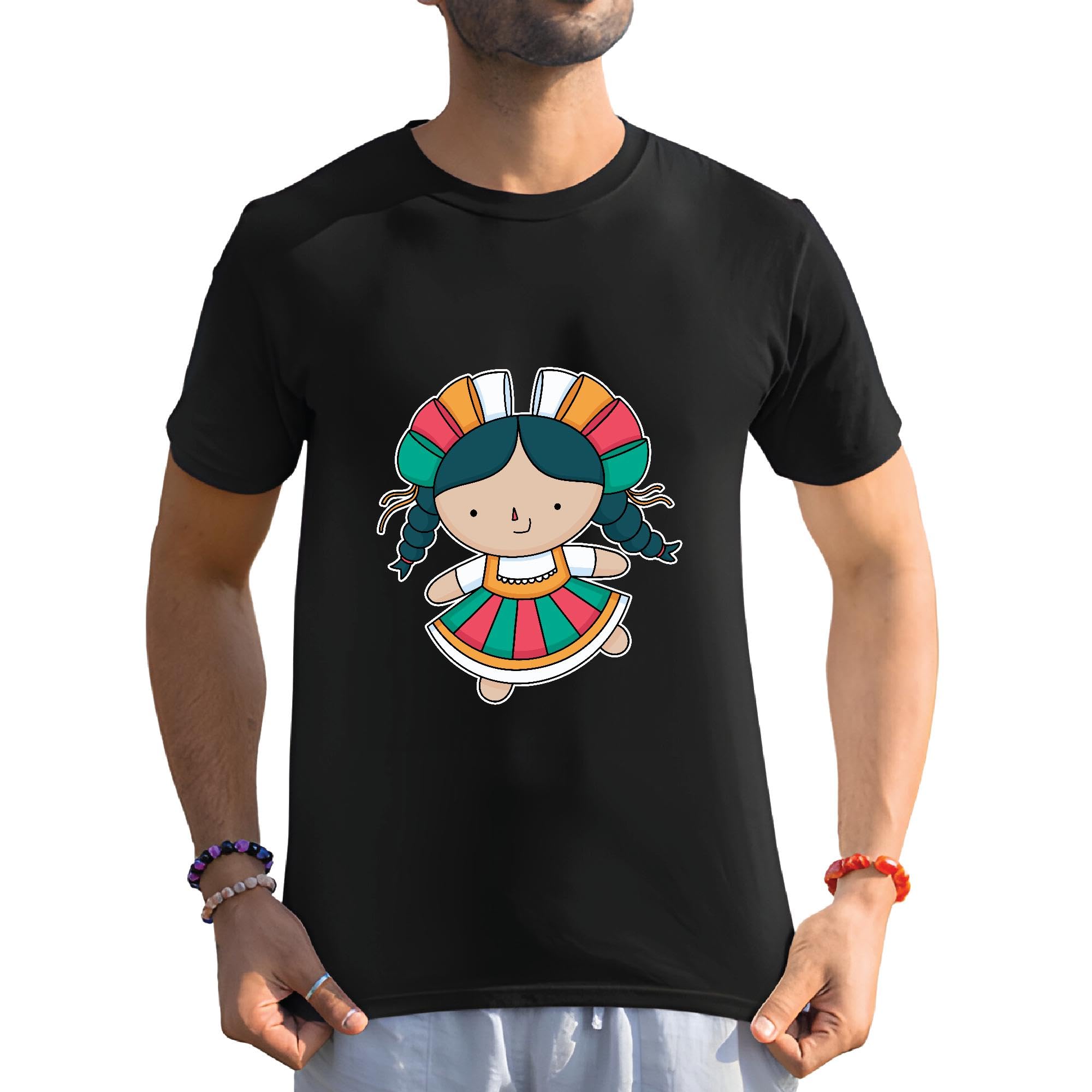 Mexican Doll Toys Gift for Kids and Collectors Men Women Black Multicolor T shirt