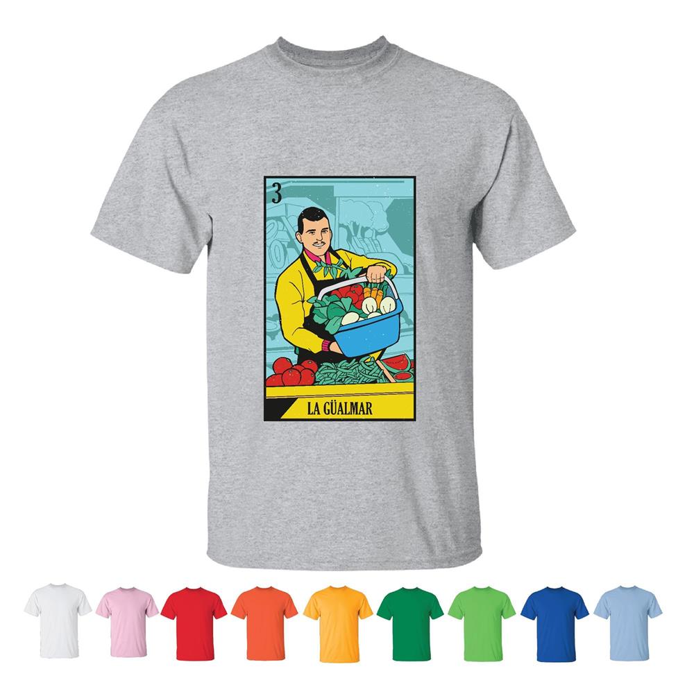 Mexican Lottery Card Gift for Cultural Enthusiasts with Veggies Inside Men Women White Gray T shirt