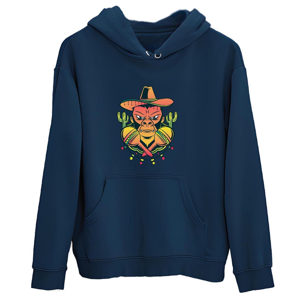 Mexican Gorilla Gift for Culture Lovers Unique Maracas Holding Gorilla Design Navy and Muticolor Unisex Hoodie