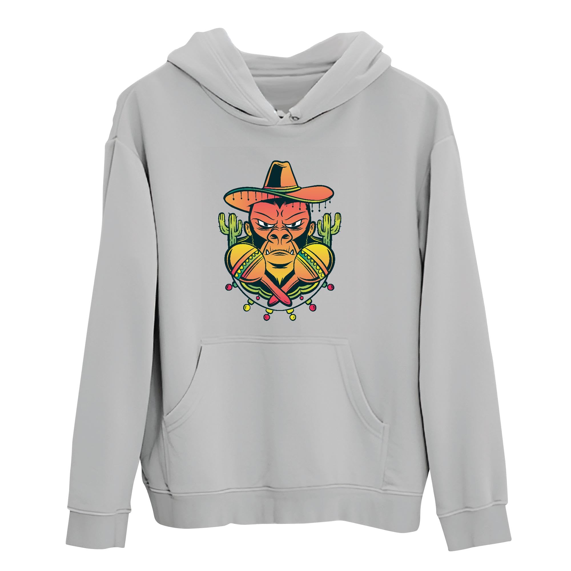 Mexican Gorilla Gift for Culture Lovers Unique Maracas Holding Gorilla Design Gray and Muticolor Unisex Hoodie