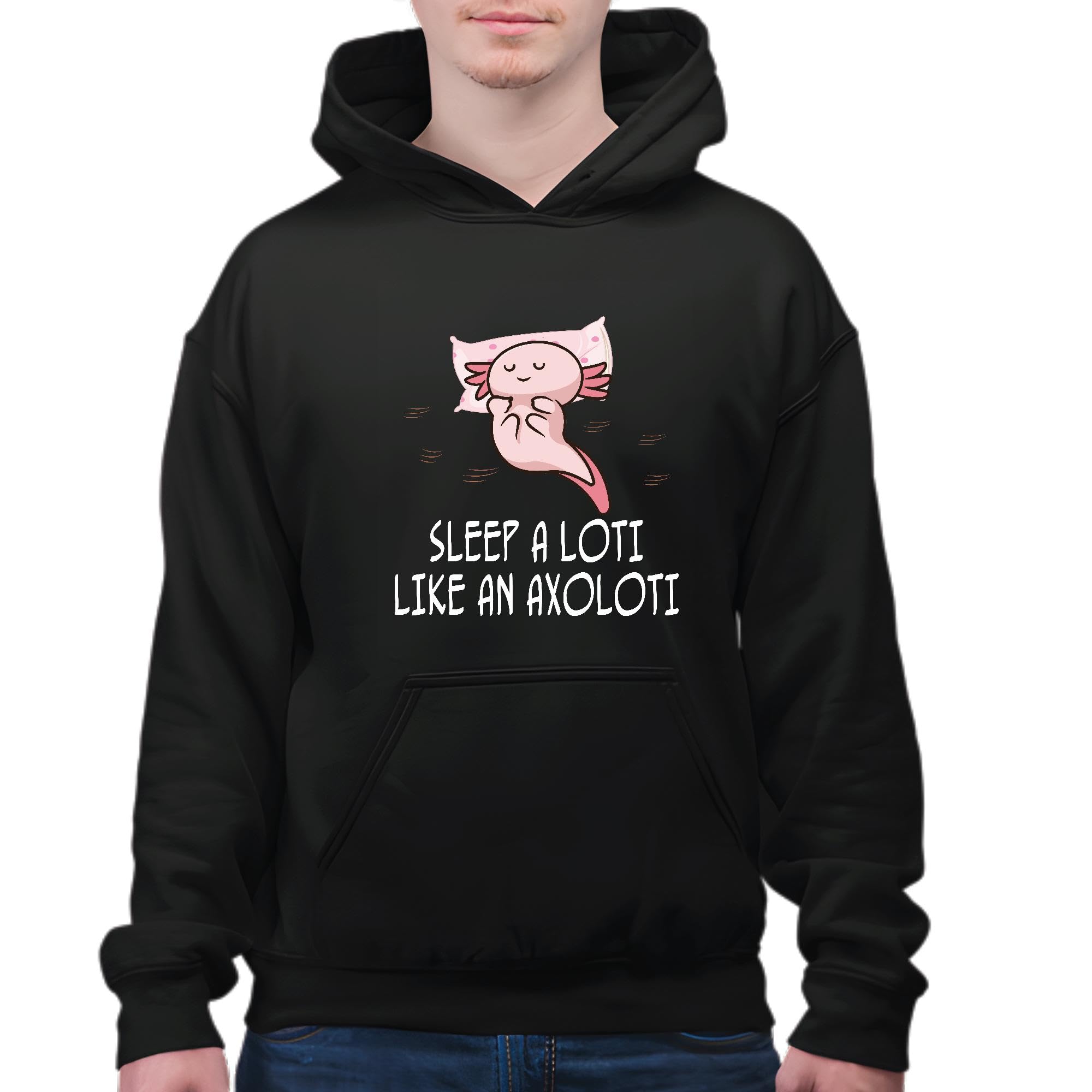 Mexican Salamander Lover PyjamasAxolotl Napping Black and Muticolor Unisex Hoodie