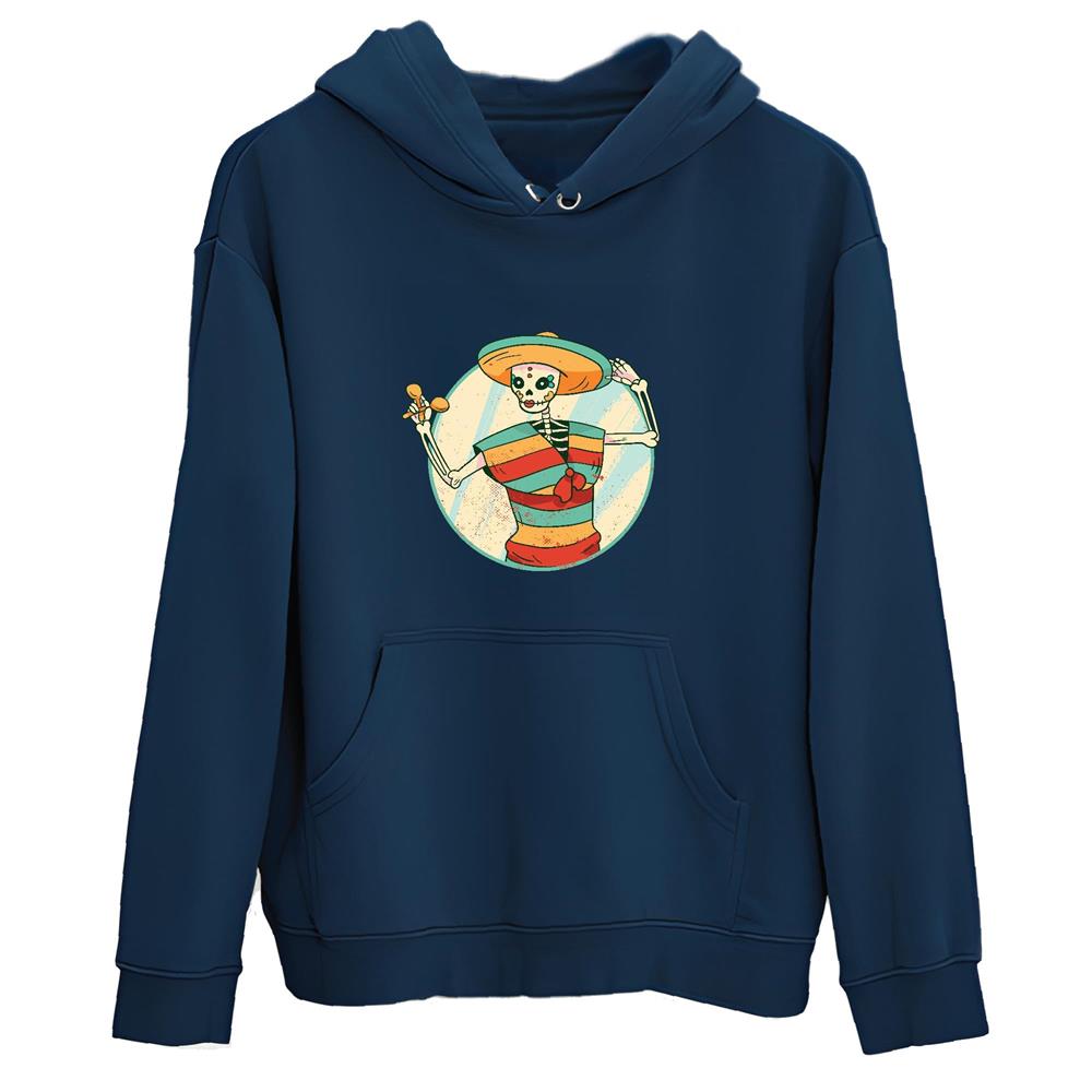 Mexican Skeleton Girl Gift for Culture Lovers Maracas Holding Navy and Muticolor Unisex Hoodie