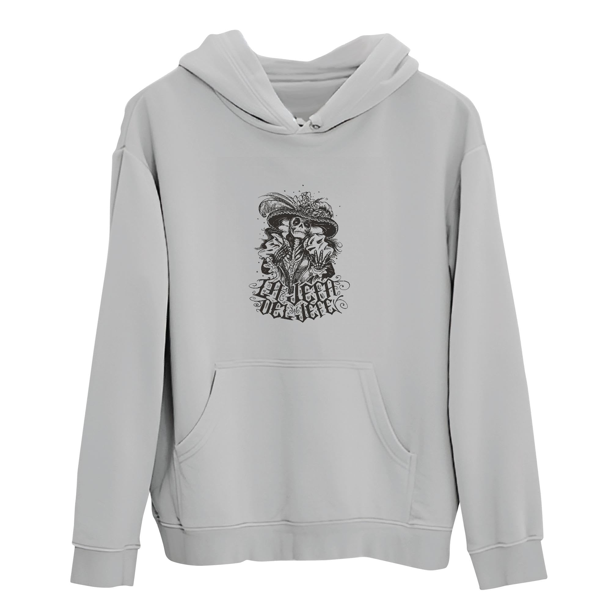 Mexican Skeleton Woman Gift Hand Drawn Artwork with Quote Gift for Bosses and Women Gray and Muticolor Unisex Hoodie