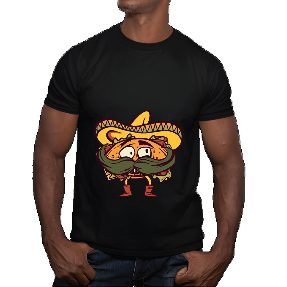 Mexican Torta Gift for Mexican Food Lovers Illustration of a Moustache Wearing Sombrero Men Women Black Multicolor T shirt
