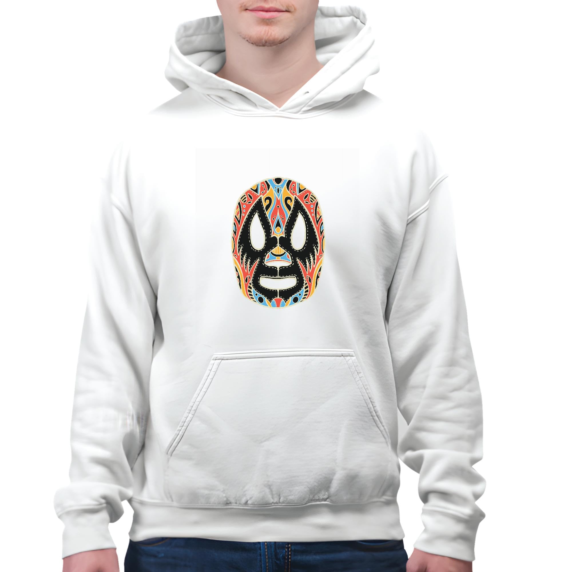 Mexican Style Wrestling Mask Gift for Wrestling Fans White and Muticolor Unisex Hoodie