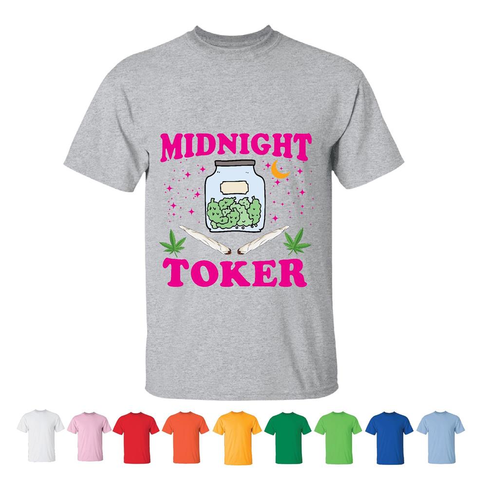 Midnight Toker Weef Marijuana Lover Men Women White Gray T shirt