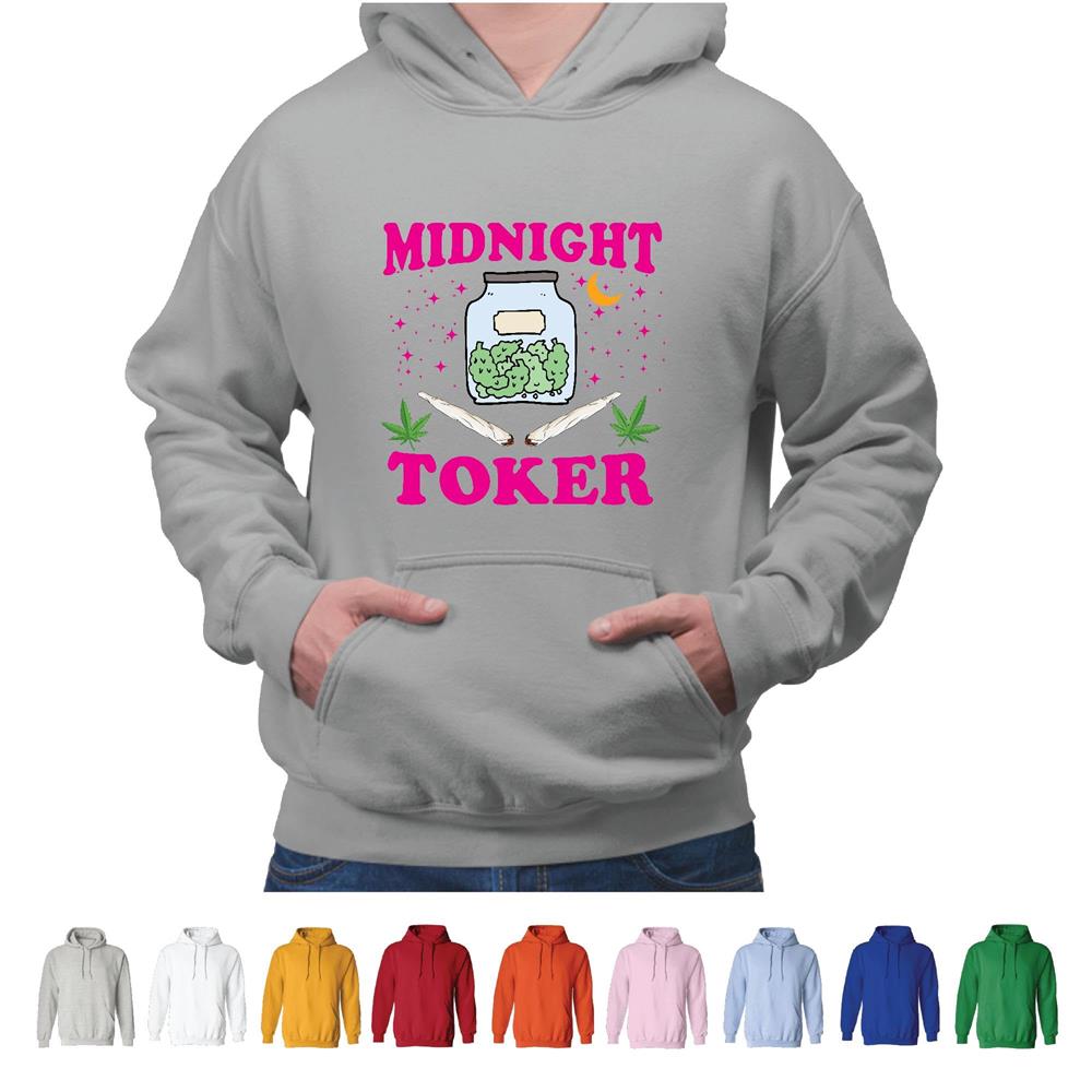 Midnight Toker Weef Marijuana Lover Gray and Muticolor Unisex Hoodie