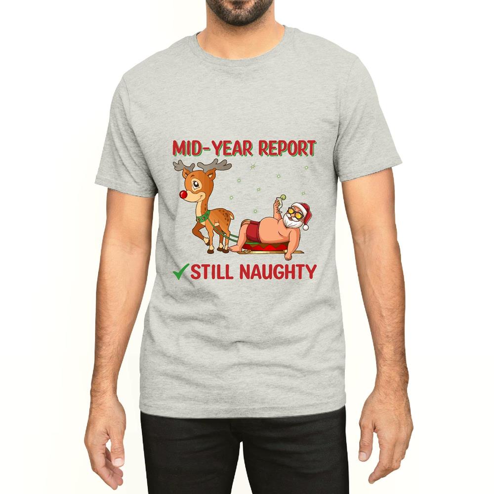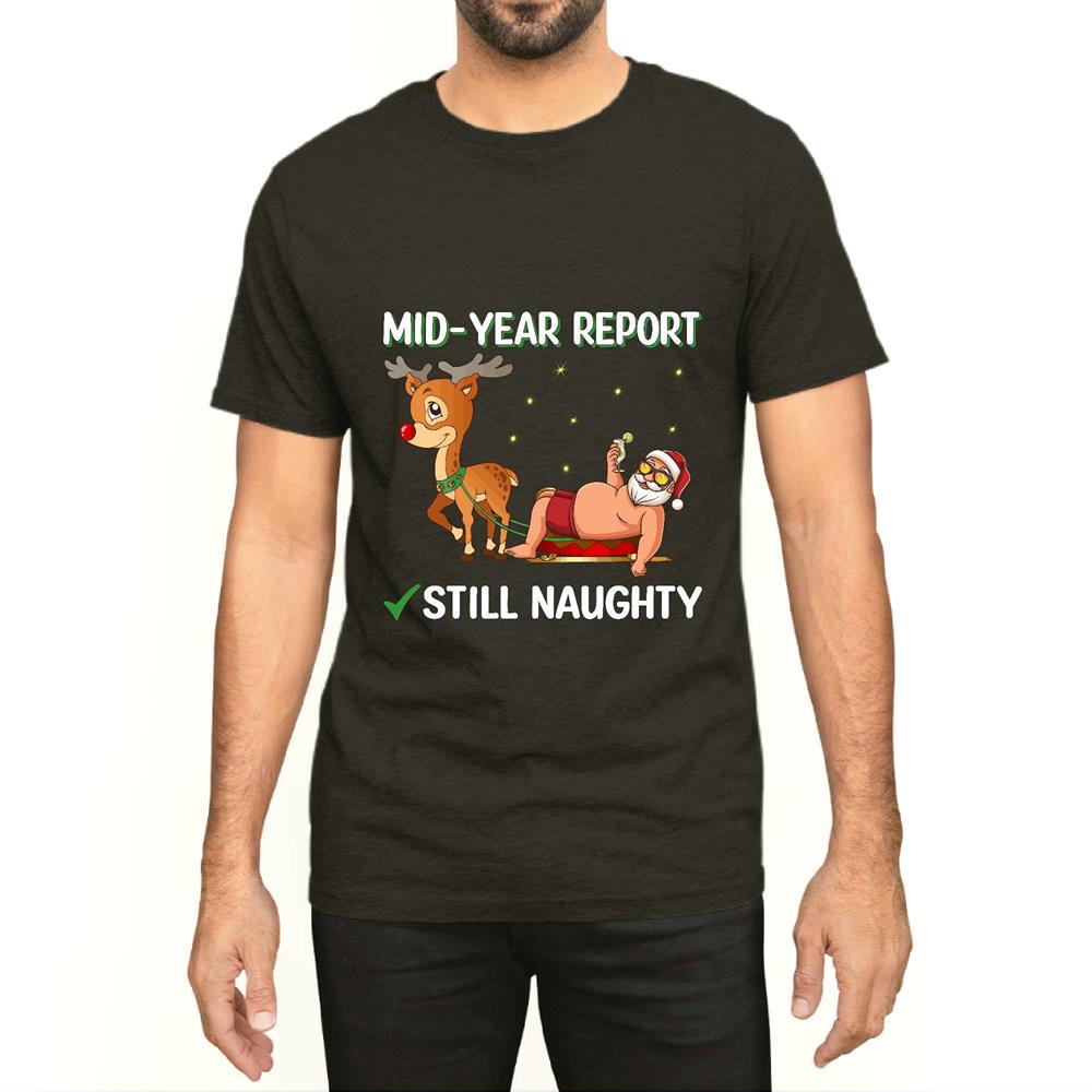 Mid year report Santa humor still naughty for a funny summer vacation Men Women White Gray Multicolor T shirt
