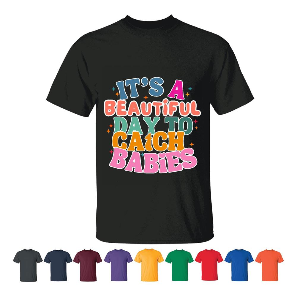 Midwife OB Doctor NICU L D Nurse Gifts Beautiful Day Catch Babies Shirt Men Women White Gray T shirt