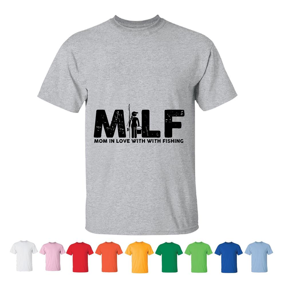 MILF funny quote Mom in love with Fishing Fisher mom Men Women White Gray T shirt
