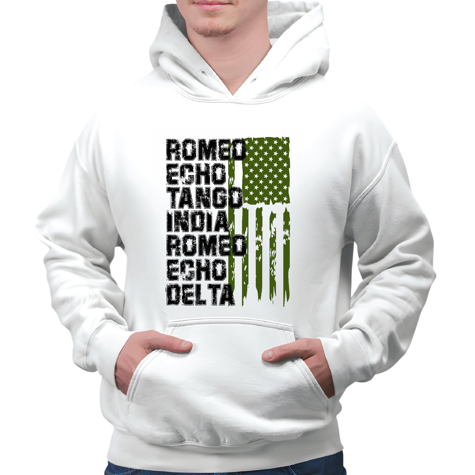 Military Retirement Gift for Men Women Phonetic Alphabet White and Muticolor Unisex Hoodie