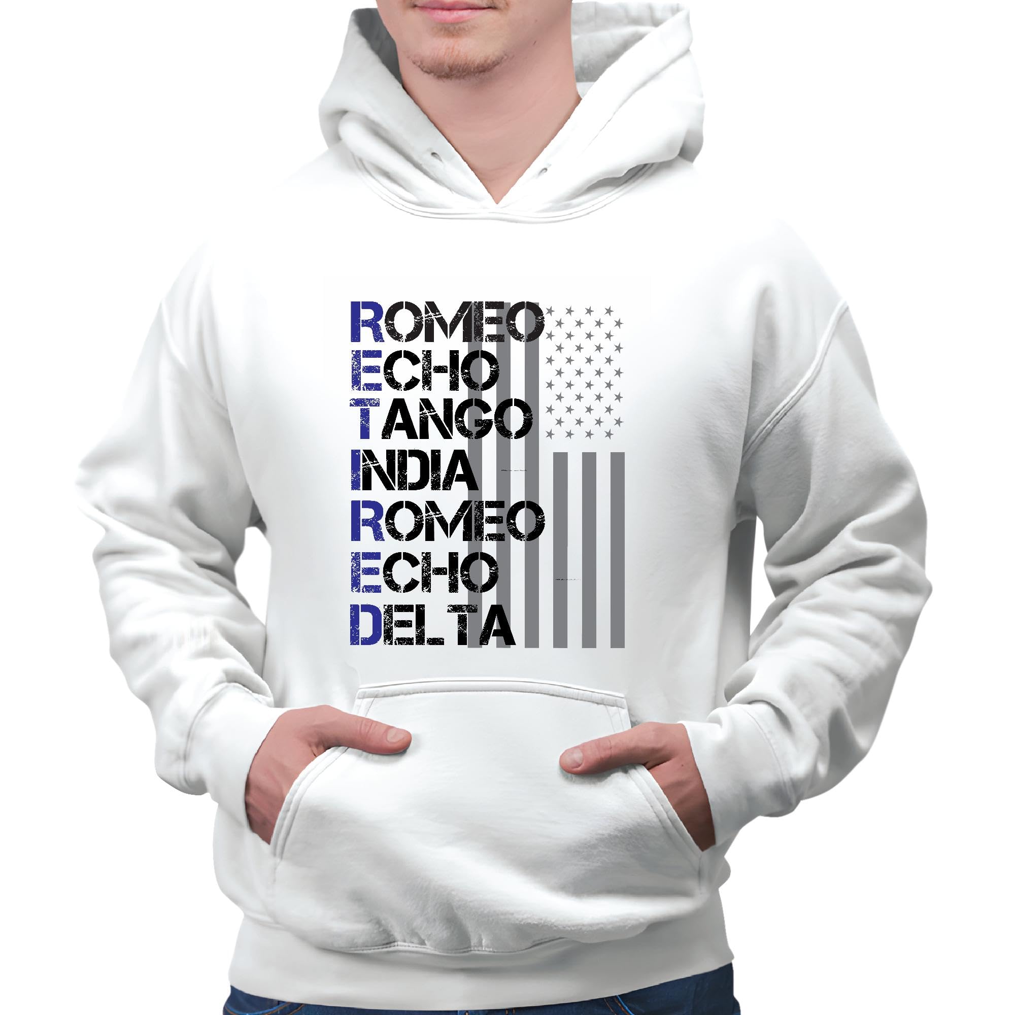 Military Retirement Gift for Men Women Alphabet Phonetic White and Muticolor Unisex Hoodie