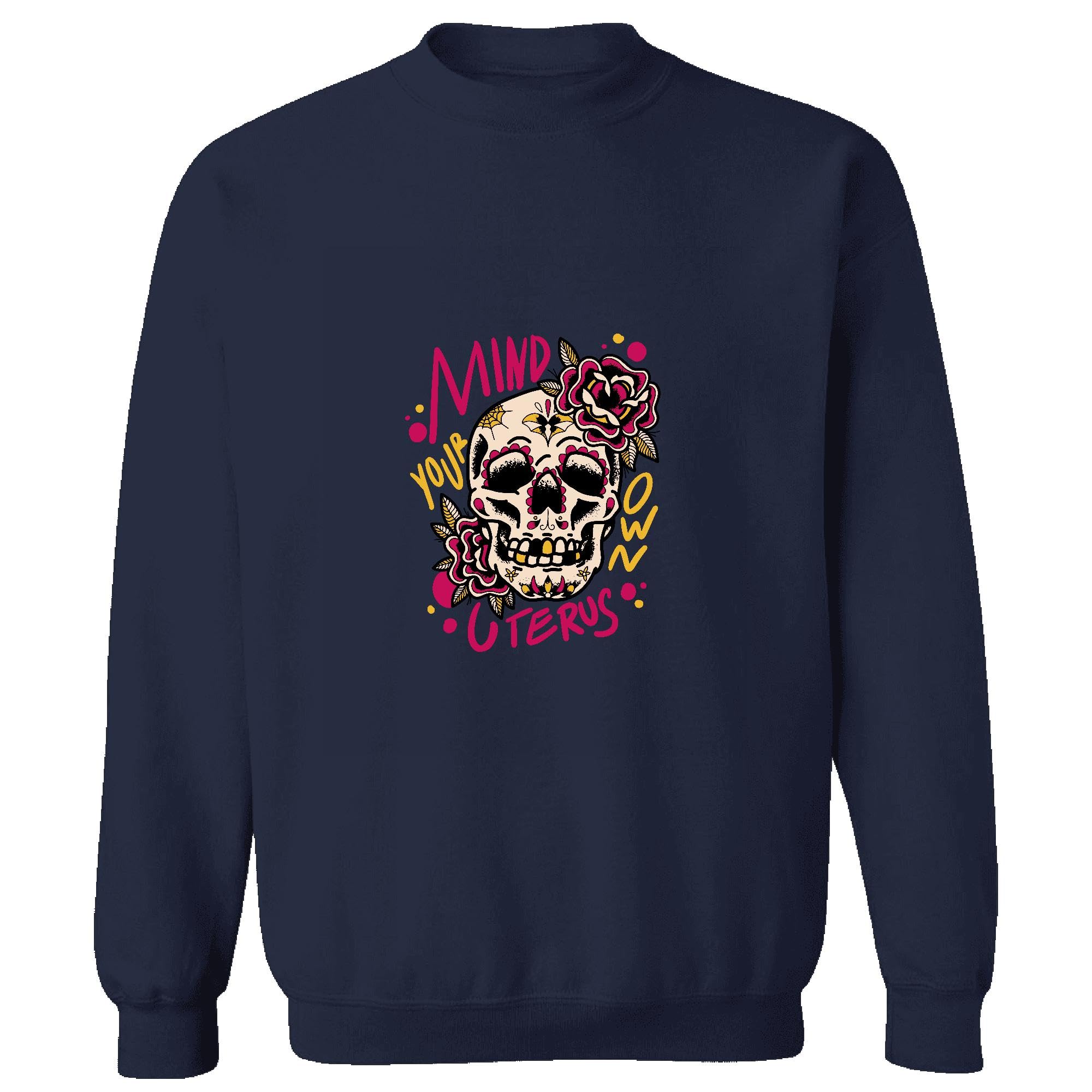 Mind Your Own Uterus Floral Skull Gift for Women Unique and Inspirational Navy Muticolor Unisex Sweatshirt