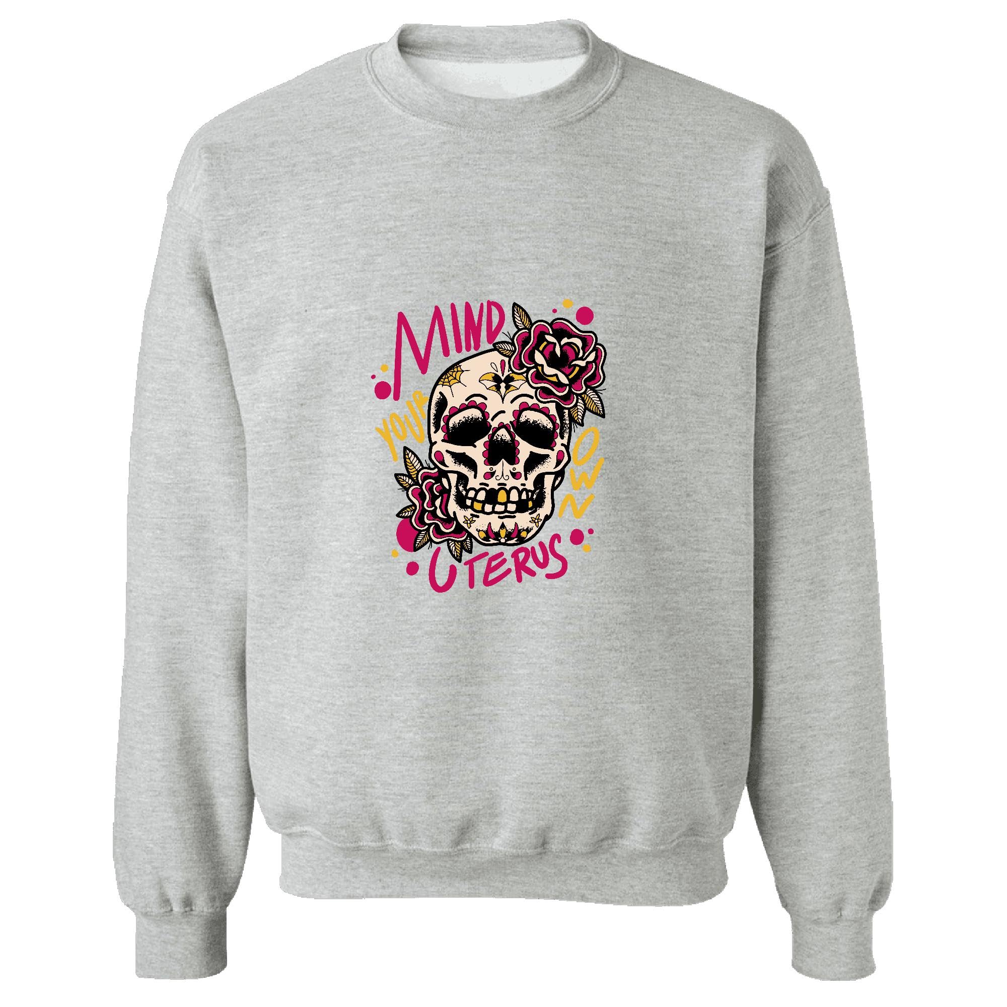 Mind Your Own Uterus Floral Skull Gift for Women Unique and Inspirational Grey Muticolor Unisex Sweatshirt