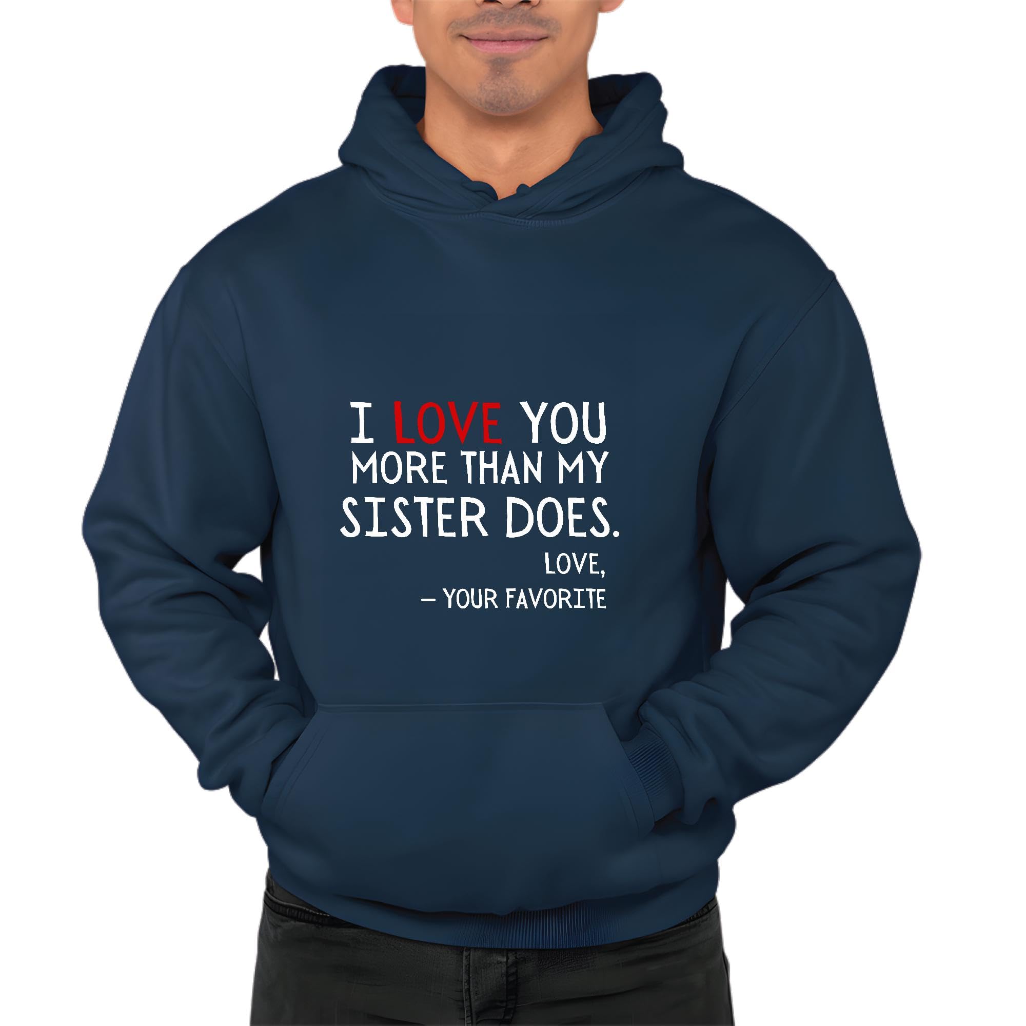 Mom Gift for I Love You More Than My Sister Does Navy and Muticolor Unisex Hoodie