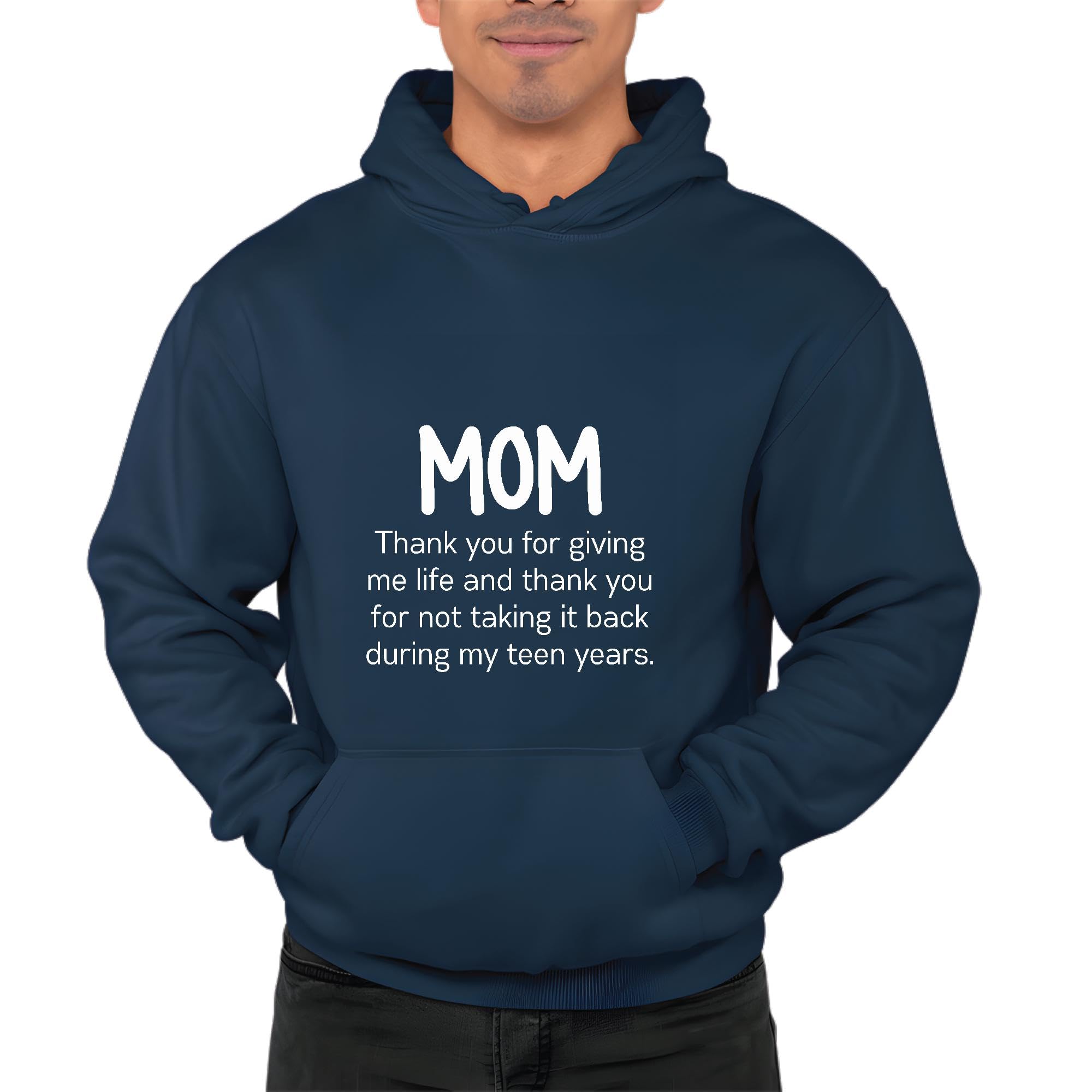 Mom Humor Gift Thank You for Giving Me Life Mothers Sarcasm for Mom Navy and Muticolor Unisex Hoodie