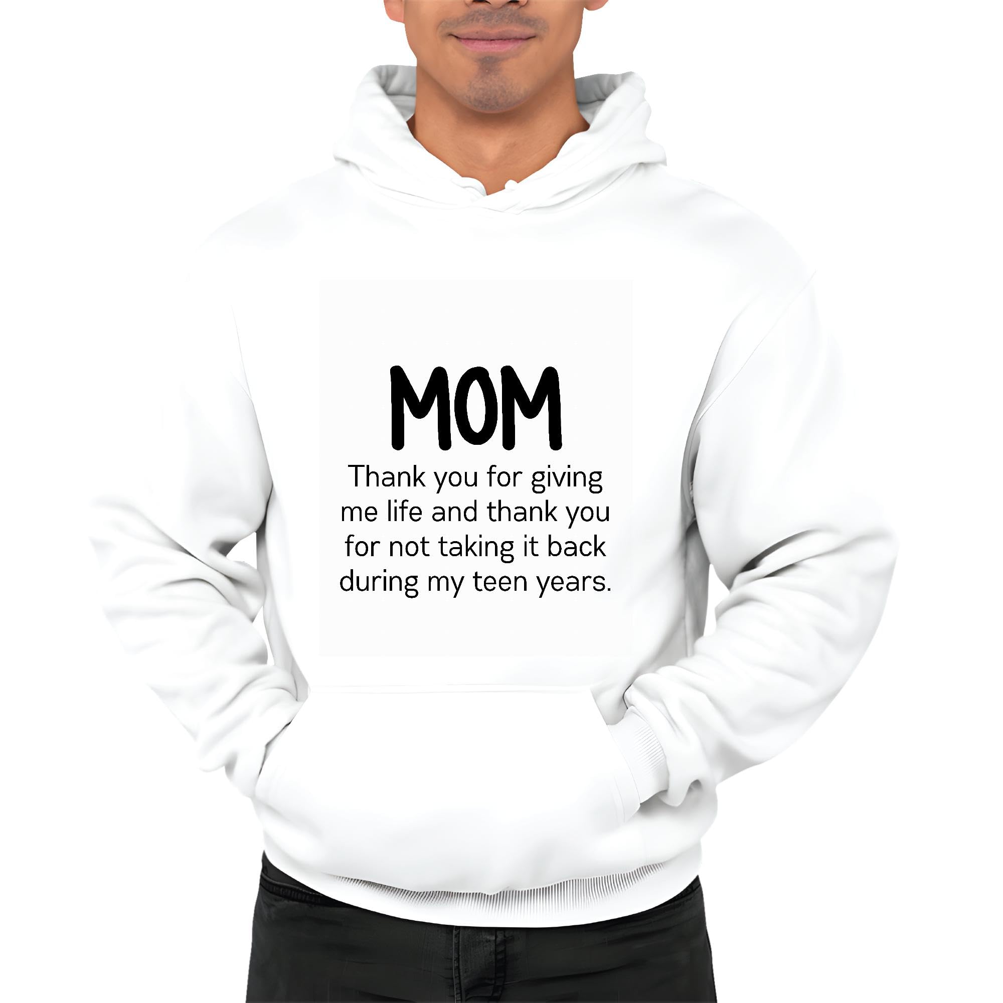 Mom Humor Gift Thank You for Giving Me Life Mothers Sarcasm for Mom White and Muticolor Unisex Hoodie