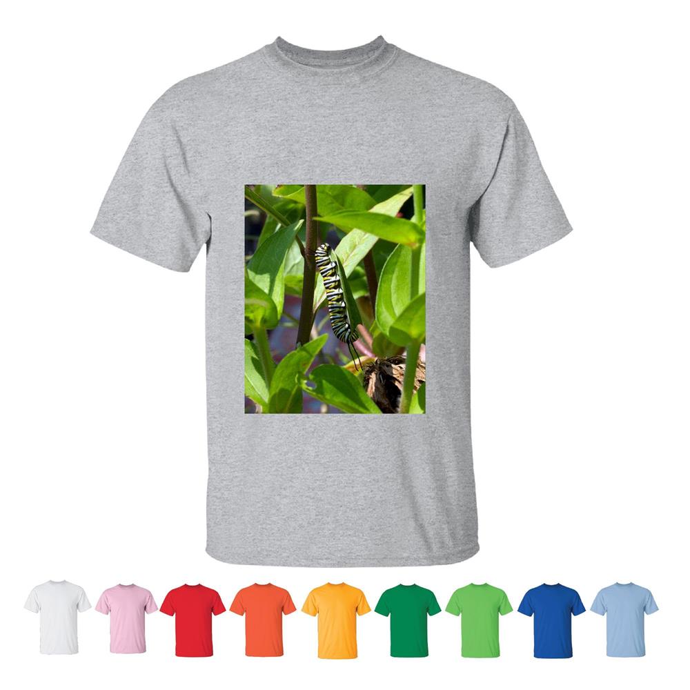 Monarch Butterfly Plant Picture Photography Men Women White Gray T shirt