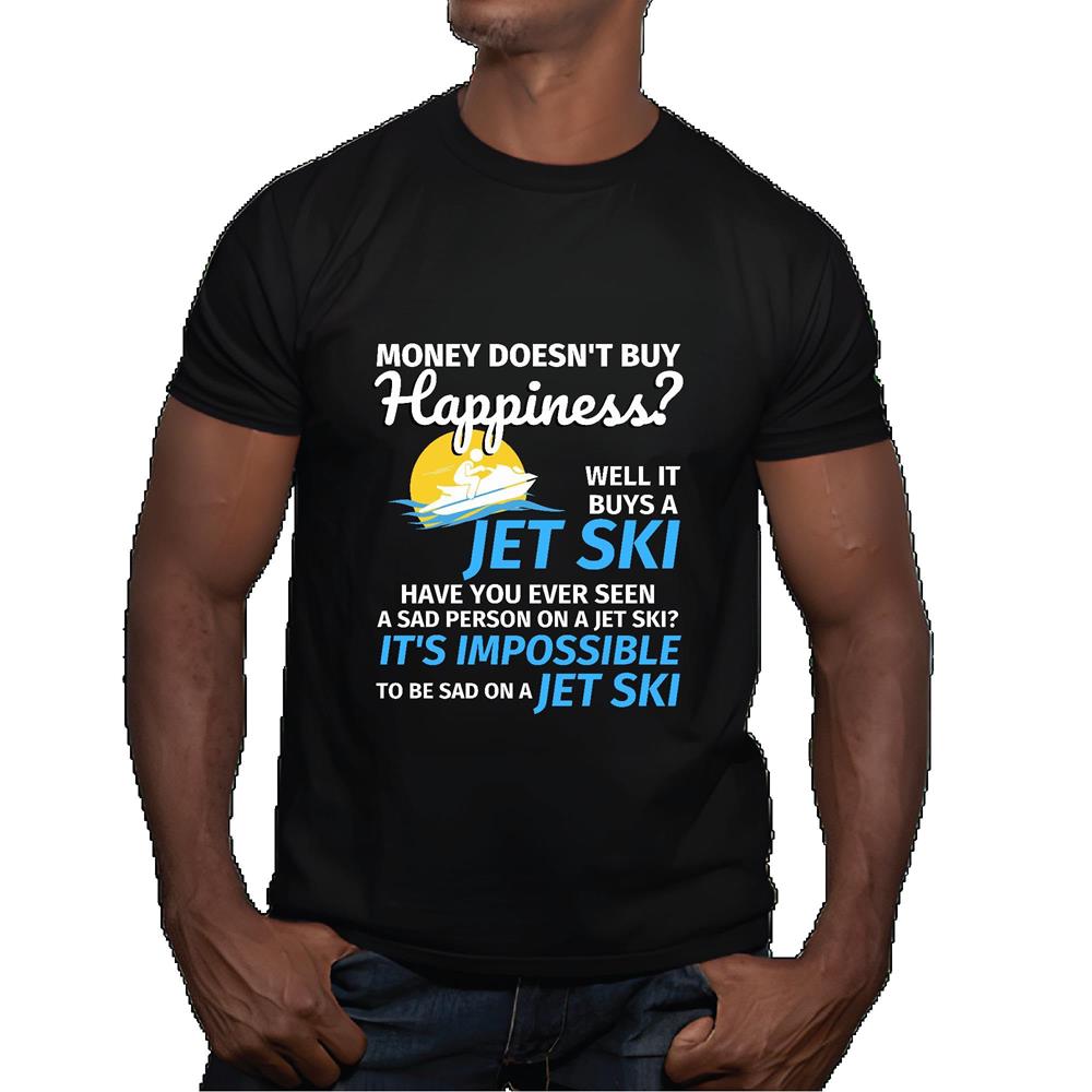 Money Cannot Buy Happiness But It Can Buy Jet Skiing Fun for Friends Family Coworkers Men Women Black Multicolor T shirt
