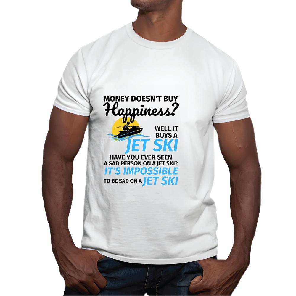 Money Cannot Buy Happiness But It Can Buy Jet Skiing Fun for Friends Family Coworkers Men Women White Gray Multicolor T shirt