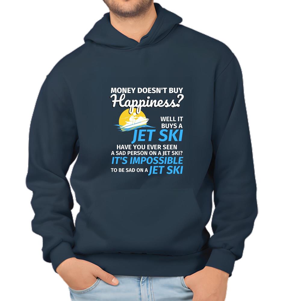 Money Cannot Buy Happiness But It Can Buy Jet Skiing Fun for Friends Family Coworkers Navy and Muticolor Unisex Hoodie