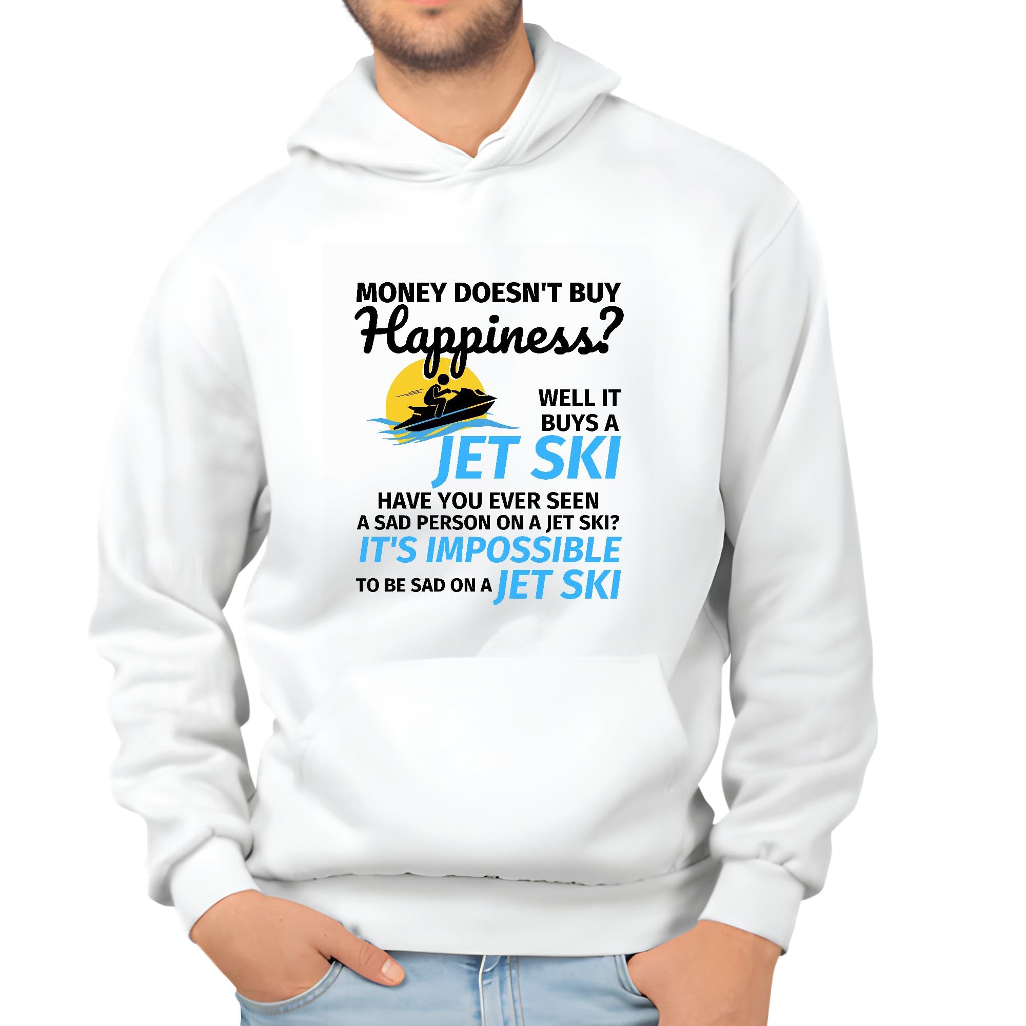 Money Cannot Buy Happiness But It Can Buy Jet Skiing Fun for Friends Family Coworkers White and Muticolor Unisex Hoodie