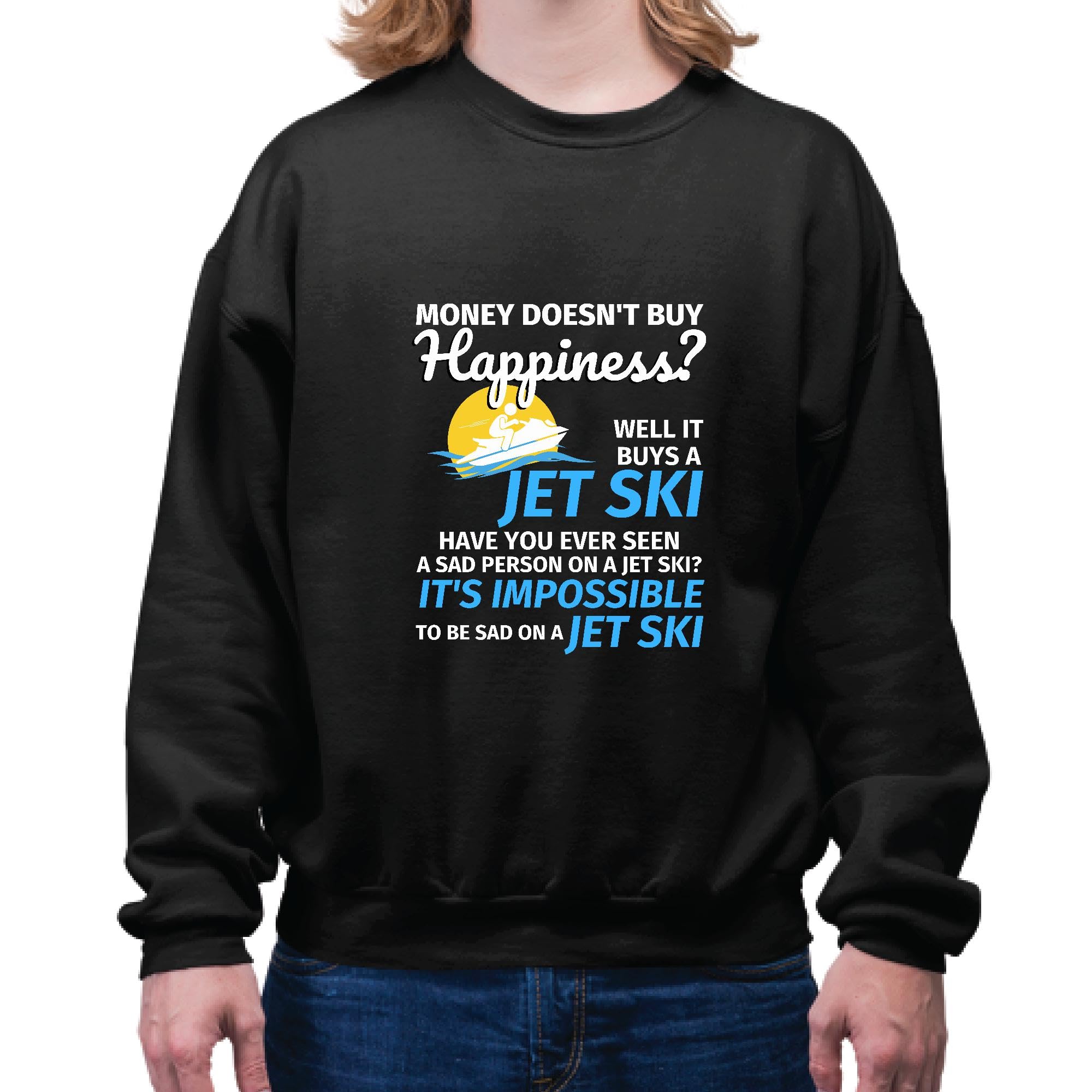 Money Cannot Buy Happiness But It Can Buy Jet Skiing Fun for Friends Family Coworkers Navy Black Muticolor Unisex Sweatshirt