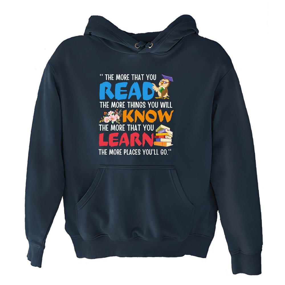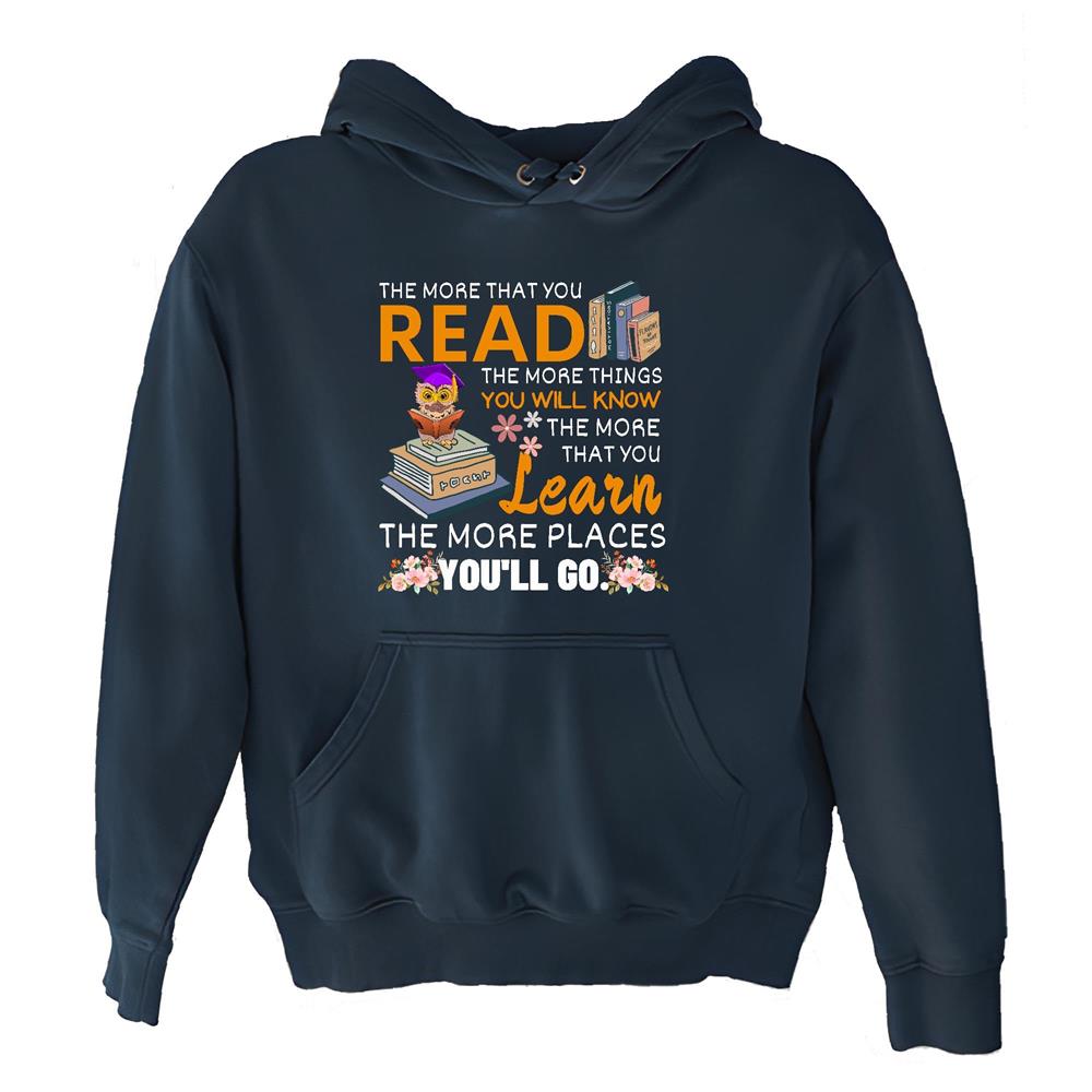 More that you read the more places youll go funny for Bookworm Reader Book lover Navy and Muticolor Unisex Hoodie