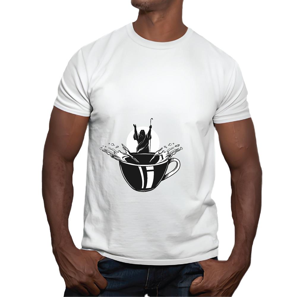 Moses Coffee Gift Religious Art Print for Coffee Lovers Men Women White Gray Multicolor T shirt