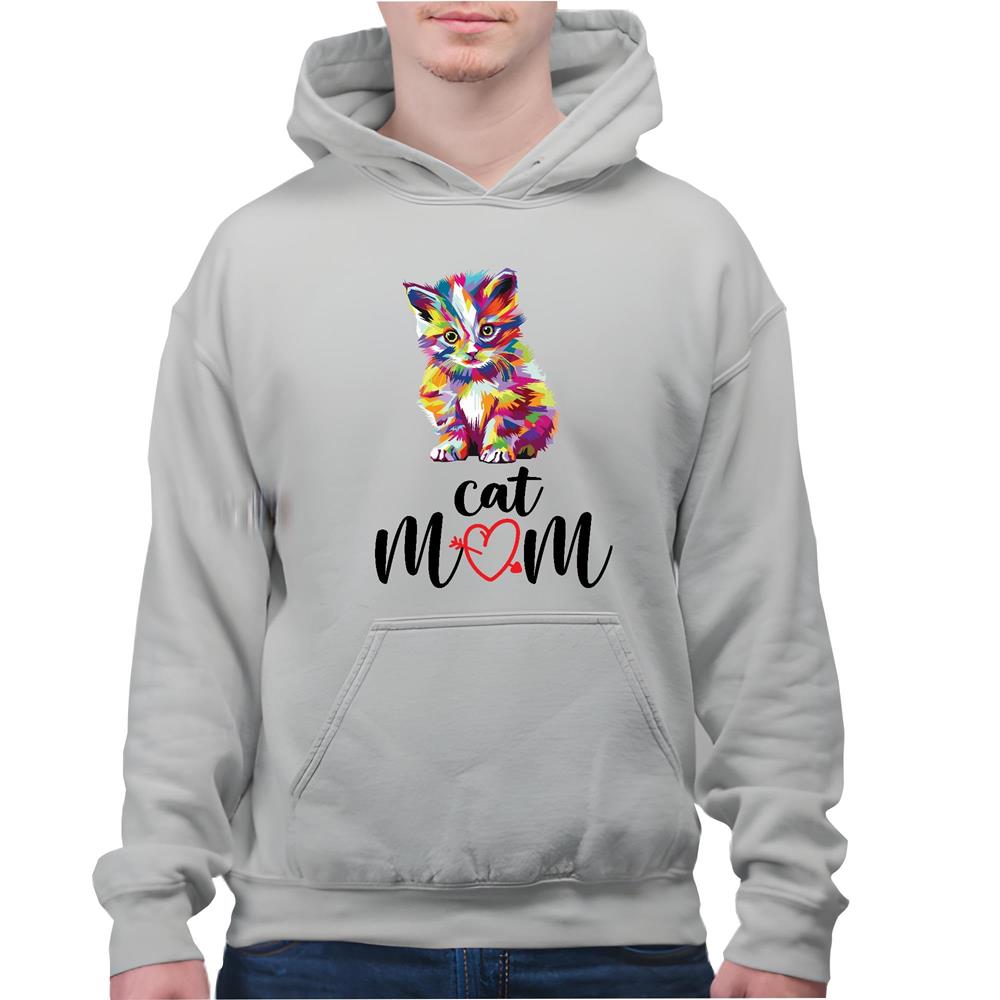 Mother Cat cute for Cat pet Lover Gray and Muticolor Unisex Hoodie