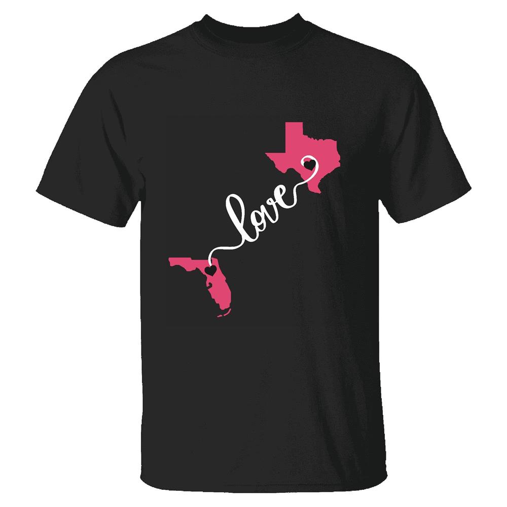 Mother Daughter Long Distance Gift Florida to Texas Two State One Love Humor Men Women Black Multicolor T shirt