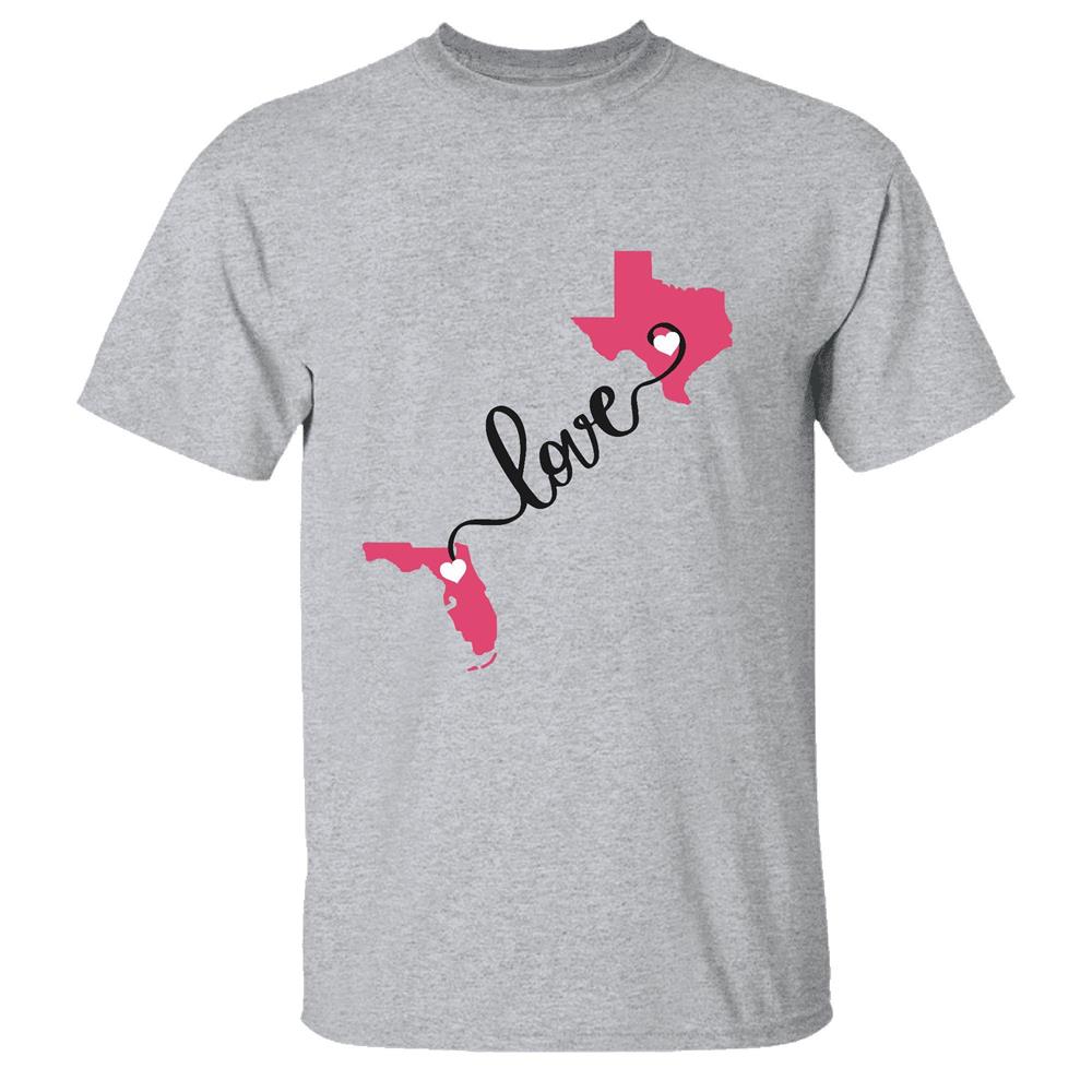 Mother Daughter Long Distance Gift Florida to Texas Two State One Love Humor Men Women White Gray Multicolor T shirt