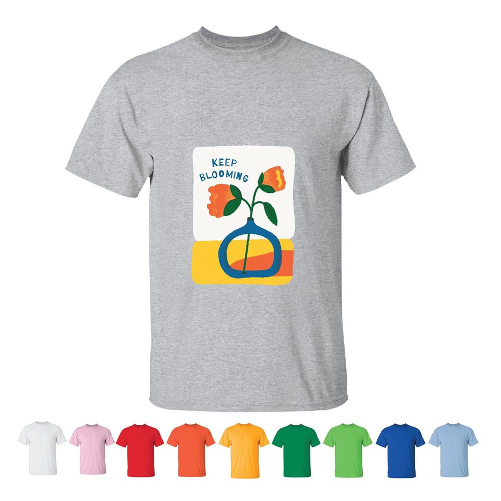 Motivational Flower Design Gift for Her Him Inspiring Quote Keep blooming Men Women White Gray T shirt