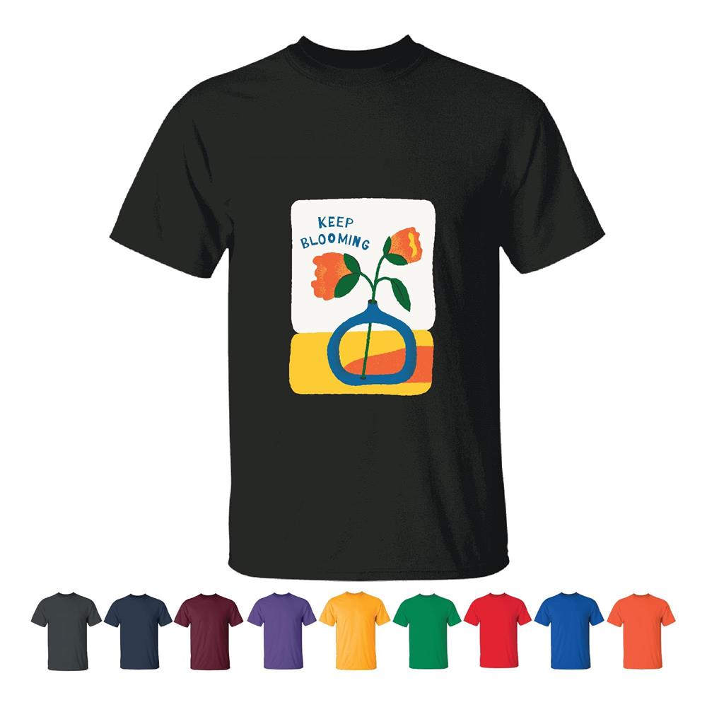 Motivational Flower Design Gift for Her Him Inspiring Quote Keep blooming Men Women Black T shirt