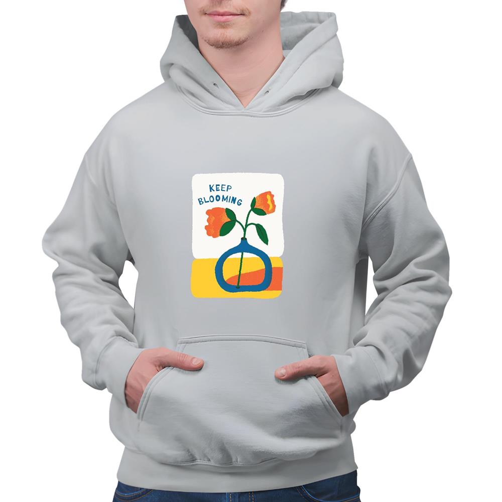 Motivational Flower Design Gift for Her Him Inspiring Quote Keep blooming Gray and Muticolor Unisex Hoodie