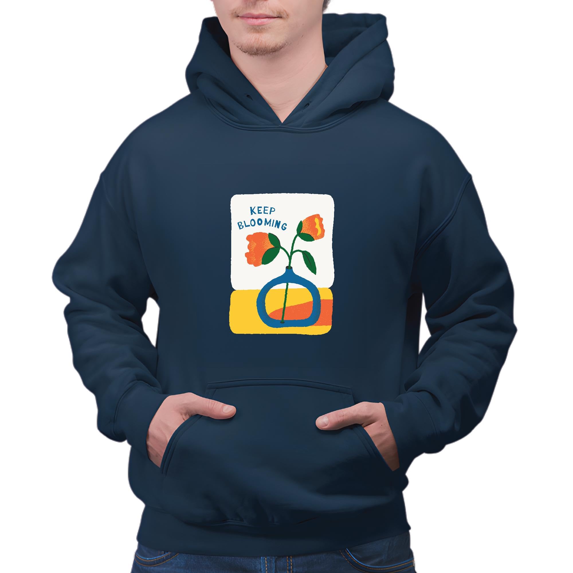 Motivational Flower Design Gift for Her Him Inspiring Quote Keep blooming Navy and Muticolor Unisex Hoodie
