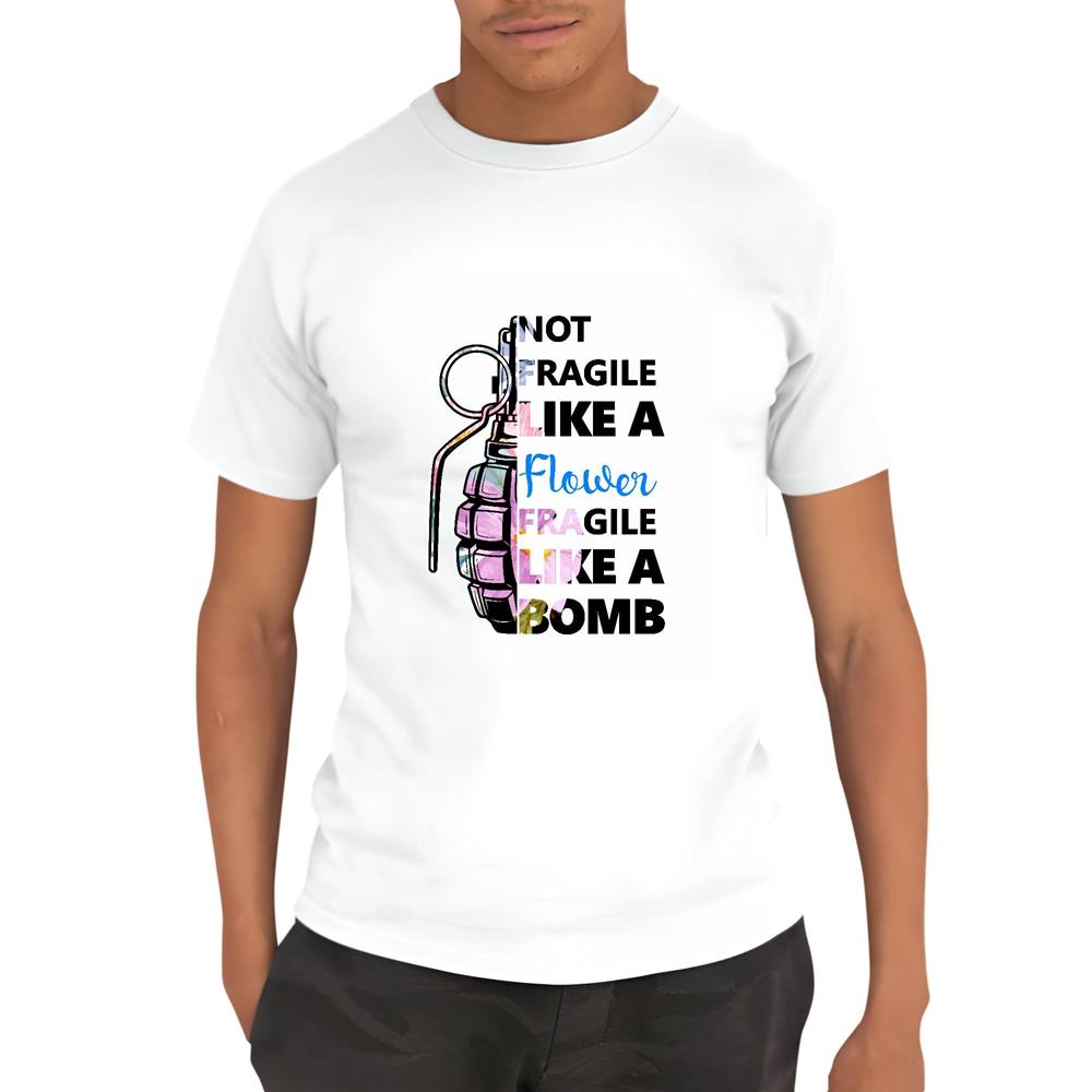Motivational for Ladies Women Feminist Not Fragile Like a Flower Fragile Like a Bomb Men Women White Gray Multicolor T shirt