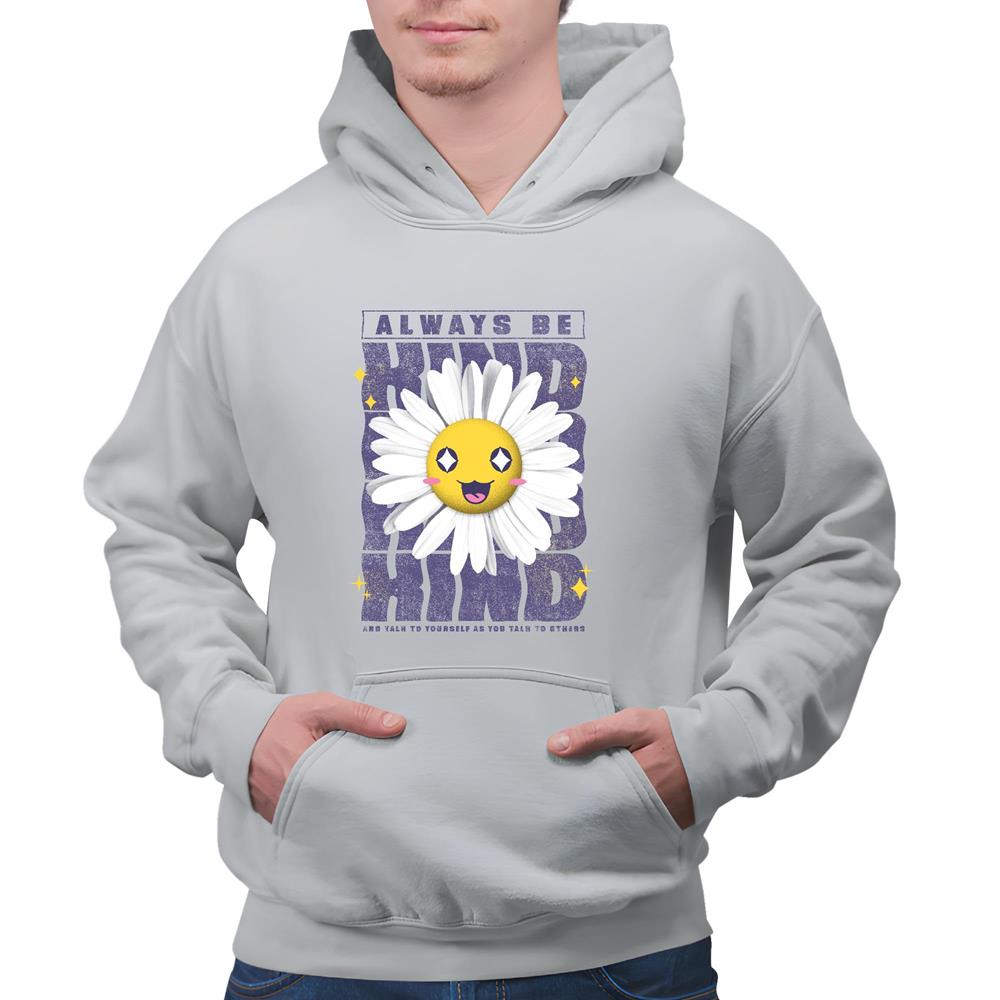 Motivational Gift Always Be Kind with Smiling Flowers for Everyone Gray and Muticolor Unisex Hoodie
