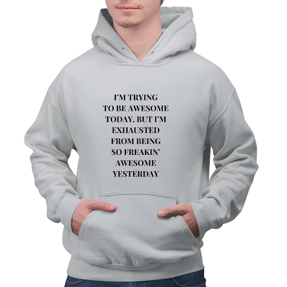 Motivational Gift for Exhausted Awesome People Gray and Muticolor Unisex Hoodie