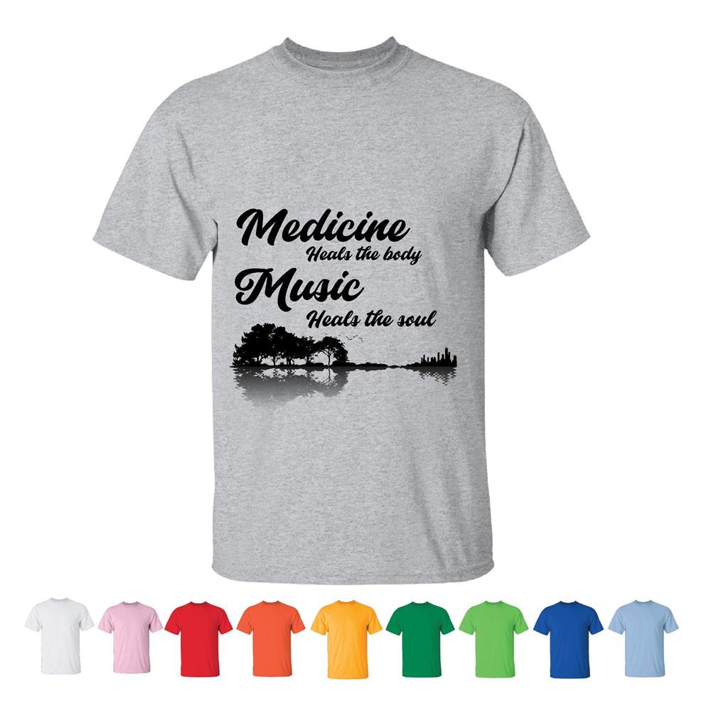 Motivational Gift for Healing Body and Soul with Music Men Women White Gray T shirt
