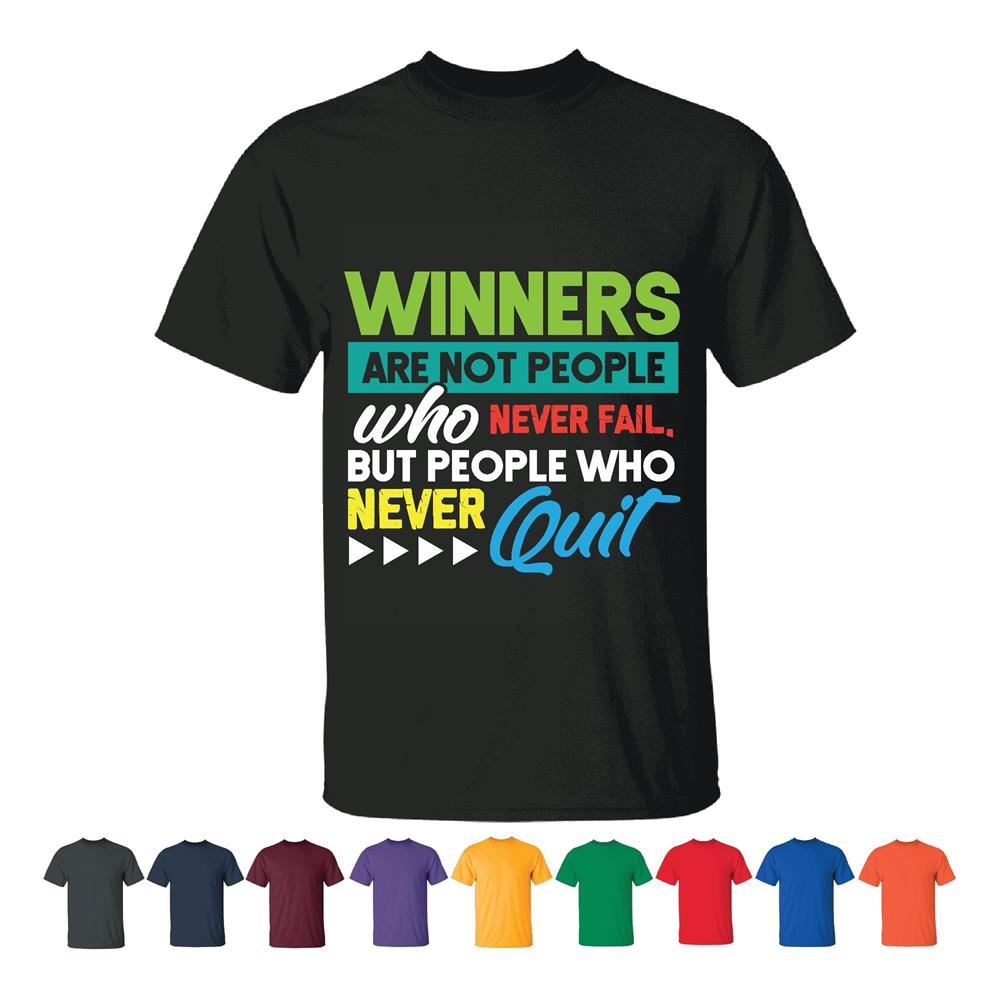 Motivational Gift for Winners Who Never Quit Despite Failing Men Women Black T shirt