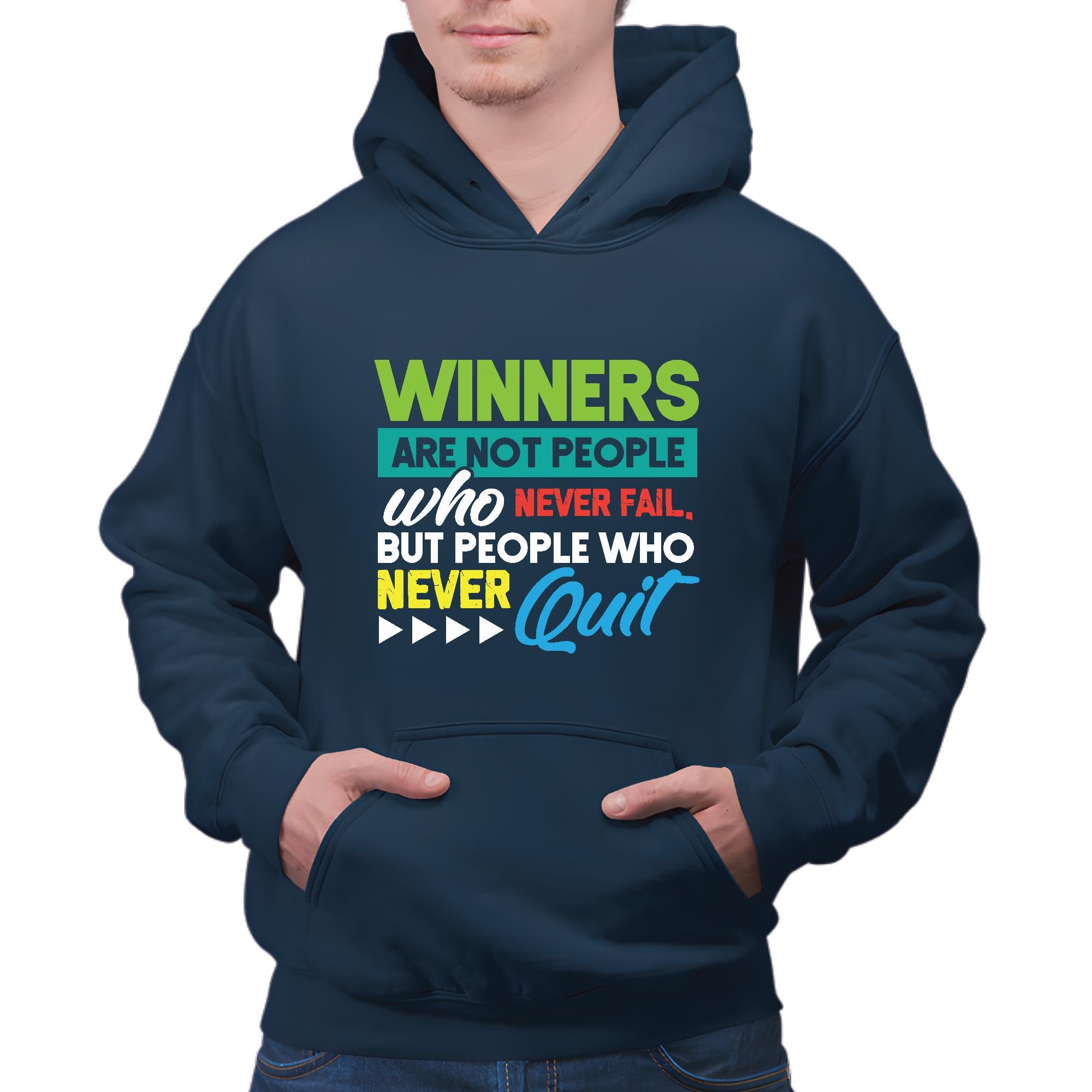 Motivational Gift for Winners Who Never Quit Despite Failing Navy and Muticolor Unisex Hoodie