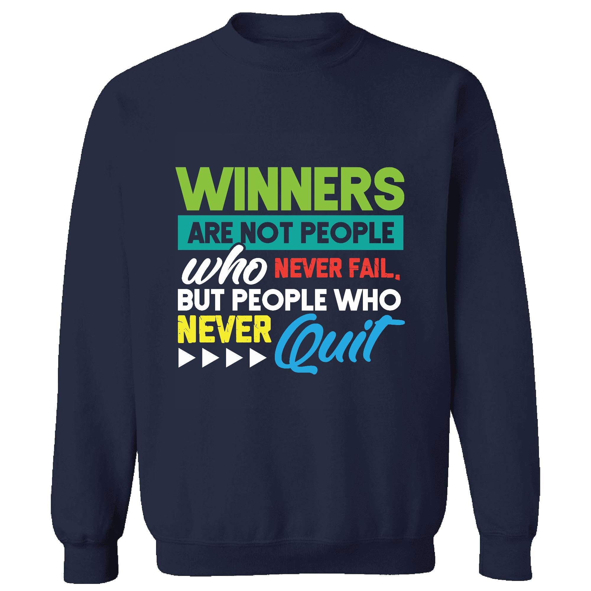 Motivational Gift for Winners Who Never Quit Despite Failing Navy Muticolor Unisex Sweatshirt