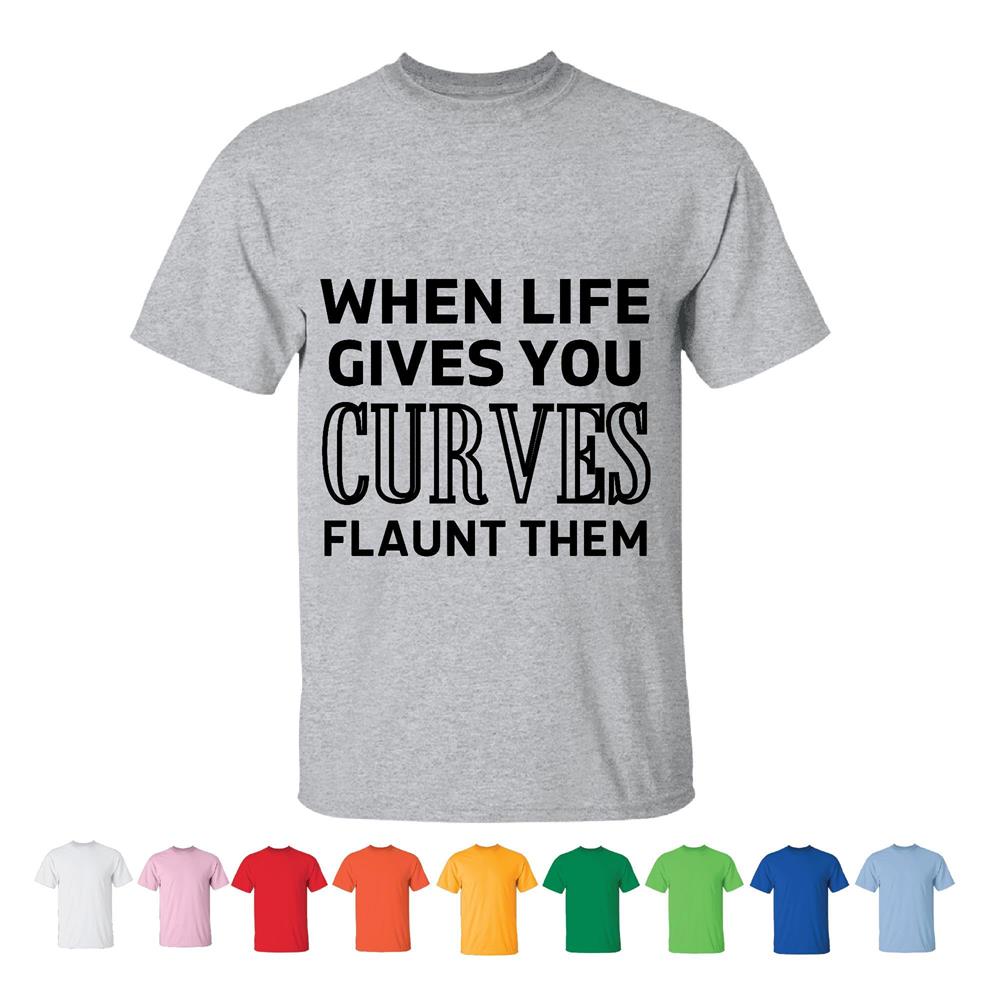 Motivational Gift for Women When Life Gives You Curves Flaunt Them Inspirational Quote Men Women White Gray T shirt