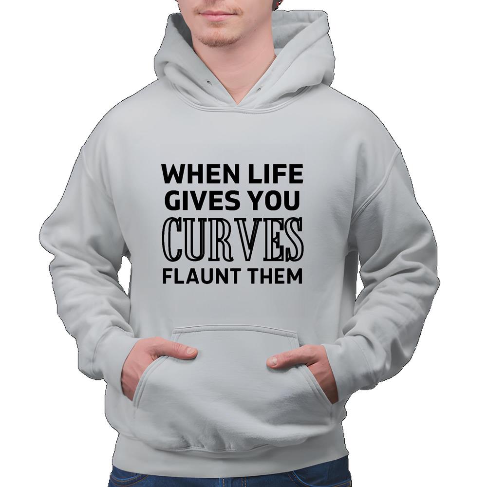 Motivational Gift for Women When Life Gives You Curves Flaunt Them Inspirational Quote Gray and Muticolor Unisex Hoodie