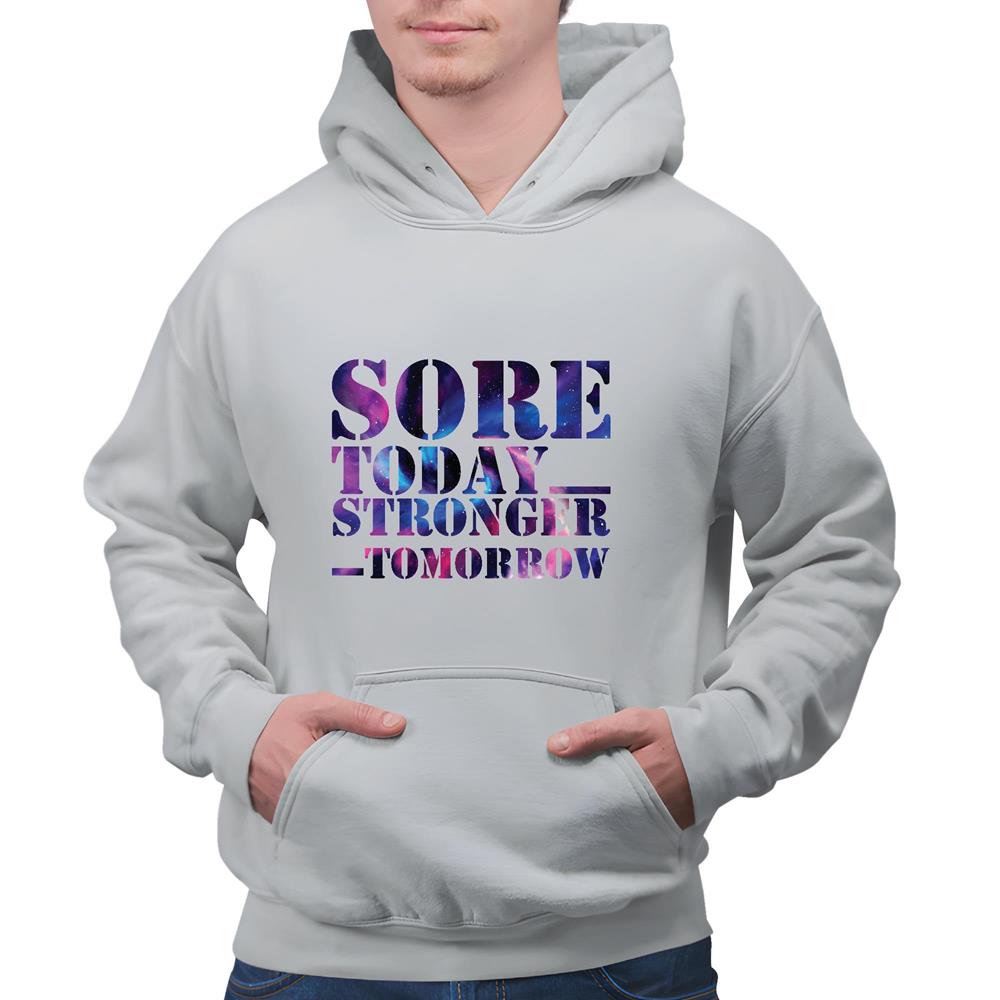 Motivational Gift for Women Men Kids Sore Today Stronger Tomorrow Quote Gray and Muticolor Unisex Hoodie