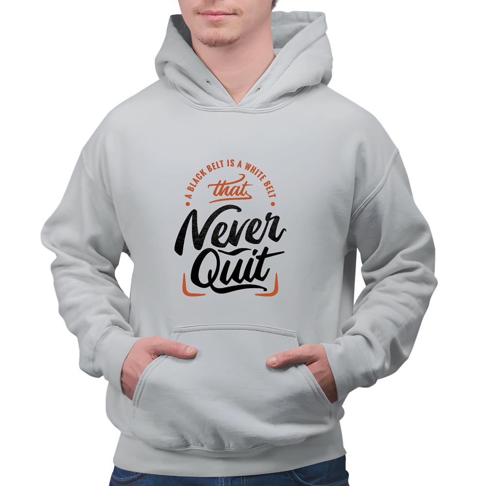 Motivational Gift Never Quit Quote Design For Martial Arts Sports Gym Lovers Gray and Muticolor Unisex Hoodie
