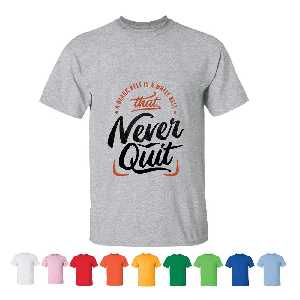 Motivational Gift Never Quit Quote Design For Martial Arts Sports Gym Lovers Men Women White Gray T shirt