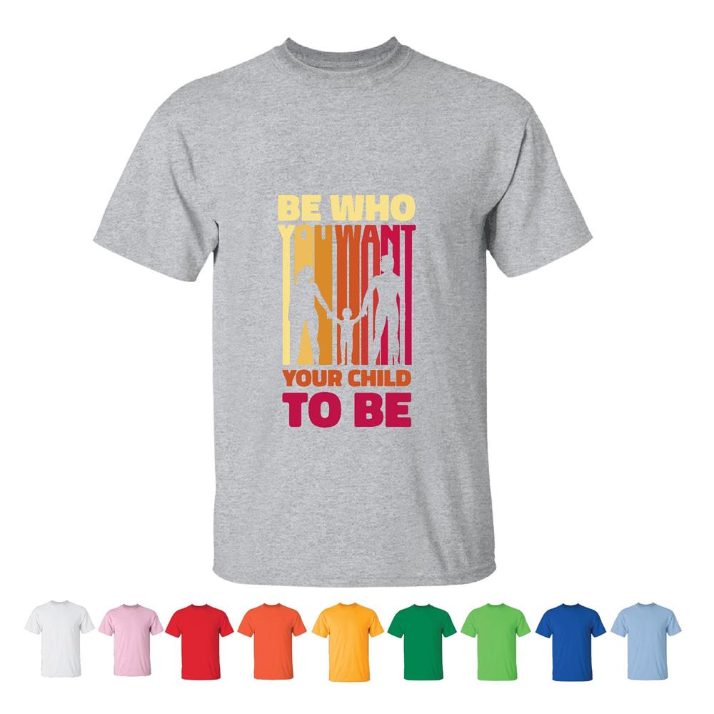 Motivational Gift Quote Be Who You Want Your Child to Be Perfect Present for Families Men Women White Gray T shirt