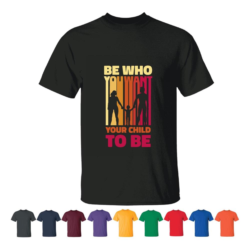 Motivational Gift Quote Be Who You Want Your Child to Be Perfect Present for Families Men Women Black T shirt